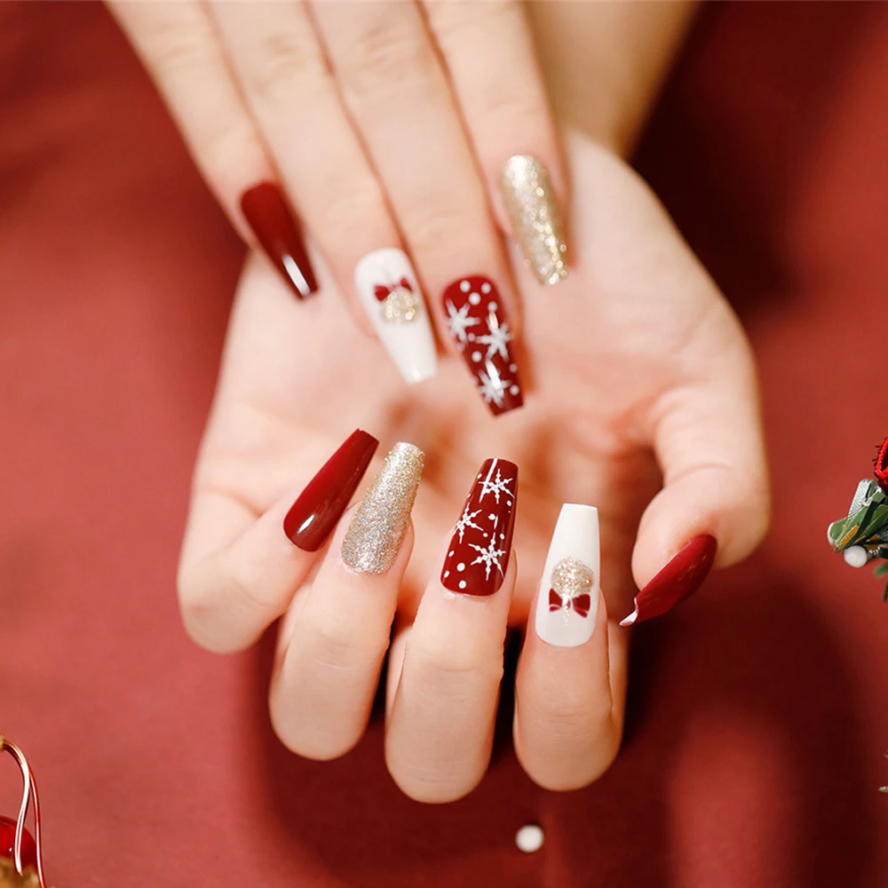 24 шт.корт. Рождественские накладные ногти в гробе накладные ногти ...
