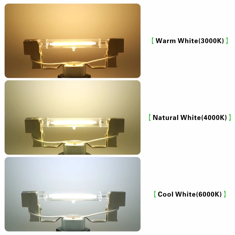 Тип цоколя: R7S светодиодный светильник COBВходное напряжение: 220-240 В переменного тока/110-140 вЦветовая температура:6000-6500K (холодный белый)2800-3500K (теплый белый)4500-5300K (натуральный белый)CRI: >80Регулировка яркости: ДаТемпература тела: <80 ℃Рабочая температура: -40 ℃ ~ + 55 ℃Мощность:6 Вт (78x13 мм)12 Вт (78x17 мм)12 Вт (118x13 мм)20 Вт (118x17 мм)Коэффициент мощности: 0,87Светодиодный чип: чип Epistar COBУгол луча: 360 °Материал: стеклянный корпус + керамический интерфейсСрок службы: 46000-52000 чЛюмен: 6 Вт = 500лм, 12 Вт = 1000ЛМ, 20 Вт = 2000лмВодонепроницаемый: IP54 наружный водонепроницаемыйСертификация: CE & RoHS