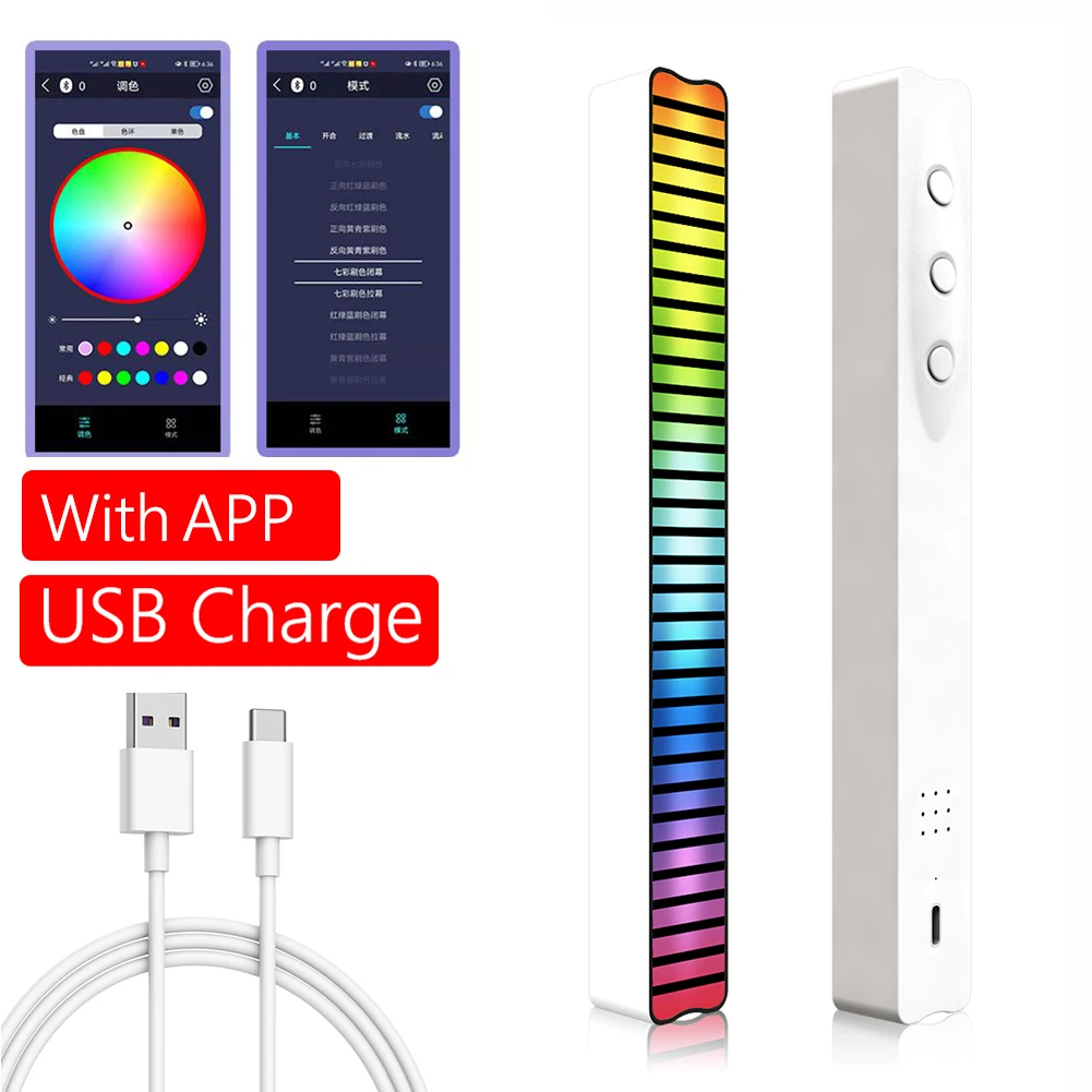 Приложение управление голосовым активированным светильник-бар музыкальный ритм Bluetooth-совместимая лампа RGB перезаряжаемая Автомобильная домашняя светодиодный декоративная лентаХарактеристика:1. Поддержка интеллектуального шумоподавления: с AGC автоматическим контролем усиления и интеллектуальным алгоритмом шумоподавления, он может использоваться в шумной среде.2. Встроенный высокочувствительный микрофон (Голосовое управление): голосовое управление определяет ритм, показывая уникальный стиль и улучшая атмосферу; Следуйте ритму.3. Bluetooth-совместимое управление приложением: Настраиваемые DIY цвета и световые эффекты, а также восторженные музыкальные и сценические режимы. Благодаря этим функциям вы можете изменить способ просмотра телевизора более легко, чем когда-либо прежде, и значительно обогатить свой визуальный опыт.4. Богатые функции: 210 волшебных цветовых режимов, 255 режимов голосового управления, 7 статических режимов, 5 динамических режимов скачек и 10 режимов звукового пикапа. Подарите вам лучшее развлечение.5. Внутренний светодиодный светильник: Поместите наш светодиодный светильник на книжную полку и стену. Огни будут синхронизироваться с вашим пением голоса в соответствии с воспроизведенной музыкой, например, с домашними животными, синхронизировать ваше настроение, украсить вашу комнату и принести вам различные впечатления от освещения.6. Улучшенное развлечение: Эта лампа добавила глубину цвета в ваш домашний кинотеатр, интерьер автомобиля и рабочий стол компьютера и создала более впечатляющую развлекательную систему. Обновите украшение для домашнего освещения, чтобы обеспечить вам более атмосферный опыт.Спецификация:Тип: ритм-лампаЦвет корпуса: белыйМатериал: ПоликарбонатМатериал: ПВХТип переключателя: тип кнопкиНапряжение: 5 (В)Статический режим: 7 видовДинамический режим скачек: 5 видовРежим приема: 10 видовВолшебный режим цвета: 210 видовРежим голосового управления: 255 видовКоличество лампочек: 32Цвет: RGB волшебный цветОтвет: 100-16 кГцПоддержка программного обеспечения: AGCИнтерфейс зарядки: разъем USB Type-CВес: 55 гГабаритные размеры: 200 мм * 23 мм * 19 мм/7.9X0.9X0.7inВведение:Этот усовершенствованный Профессиональный Интеллектуальный rgb-импульсный ритм-светильник с голосовым управлением отличается от похожих на рынок мини-светильник с размером 200 мм * 23 мм * 19 мм, которая удваивает прохладу и улучшает ваш опыт. Корпус изготовлен из акрилового материала, который отличается от других АБС-материалов и имеет текстуру, твердость и долговечность; Bluetooth-совместимое управление приложением, Настраиваемые DIY цвета и световые эффекты, обогатите свой визуальный опыт; Оснащен высококачественным штекерным зарядным кабелем Type-C, скорость зарядки быстрая!Совет:Пожалуйста, держите ботинок относительно тихим, чтобы обеспечить лучший автоматический эффект шумоподавления во время загрузки.Не подключайте источник питания выше 5 В, чтобы избежать повреждения материнской платы. Пожалуйста, используйте оборудование питания, сертифицированное соответствующими институтами.Не погружайте в воду и не используйте ее, когда влажность выше 90%.Не используйте растворитель или жидкость, кроме спирта для протирания экрана.Непрофессионалы не должны разбирать сами по себе, и ошибки продукта, вызванные проблемами некачества, не несут ответст