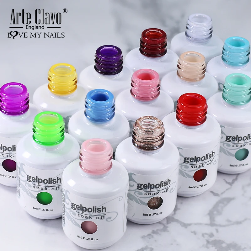 Искусственные ногти Arte Clavo, 8 мл, полуперманентный УФ-светодиодный Блестящий лак, стеклянная бутылка, для дизайна ногтей, маникюра, верхнее и Базовое покрытие