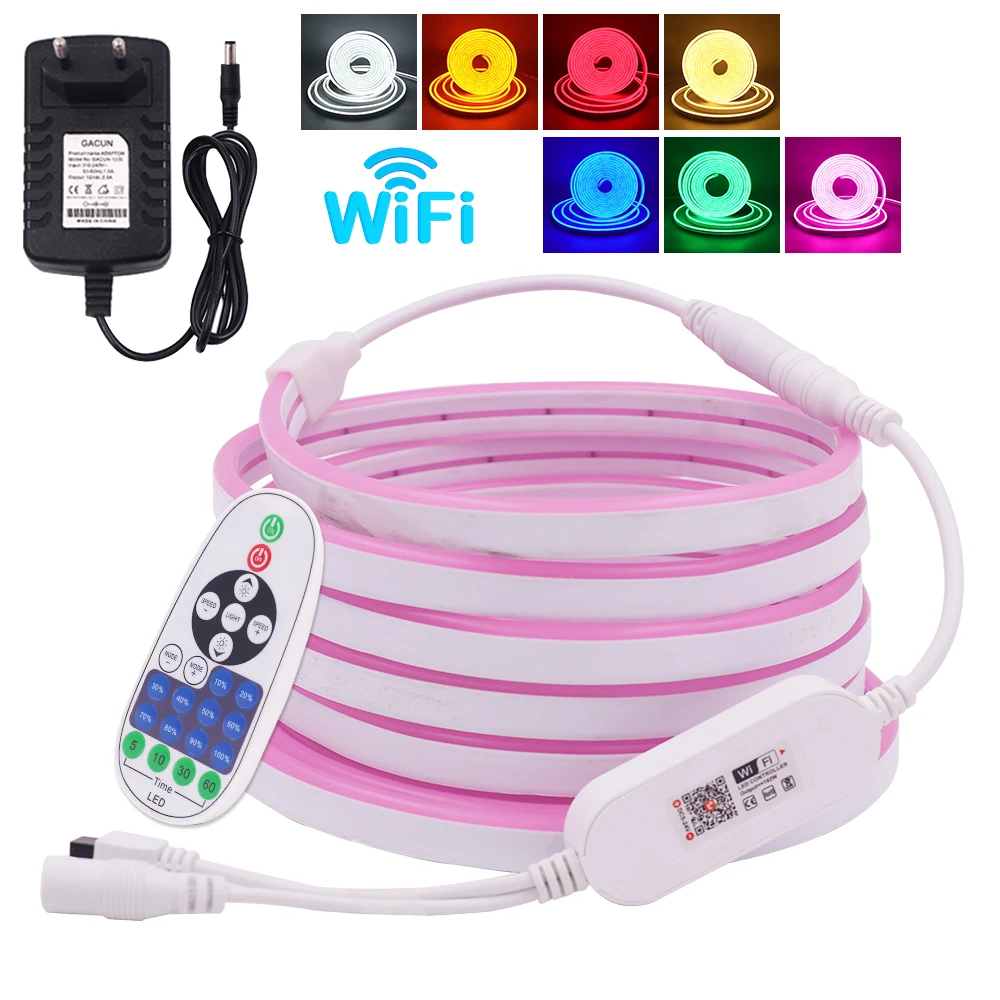 Неосветильник Светодиодная лента с регулируемой яркостью, 12 В постоянного тока, IP67, водонепроницаемая неоновая веревка, s 2835, 120 светодиодовм, гибкая неоновая вывеска с дистанционным управлением Wi-Fi