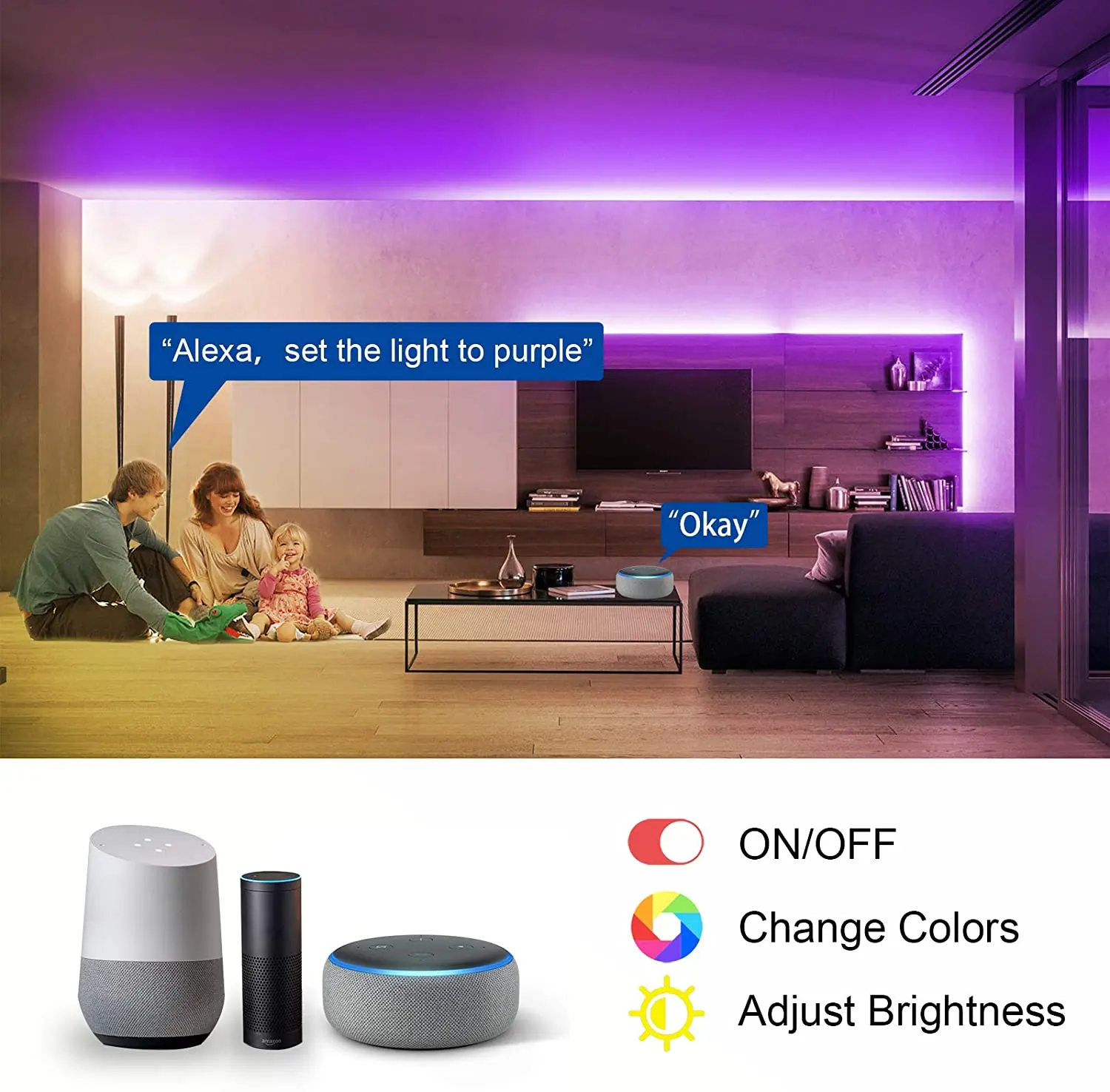 Цвет: белый, теплый белый, красный, зеленый, синий, розовый, желтый