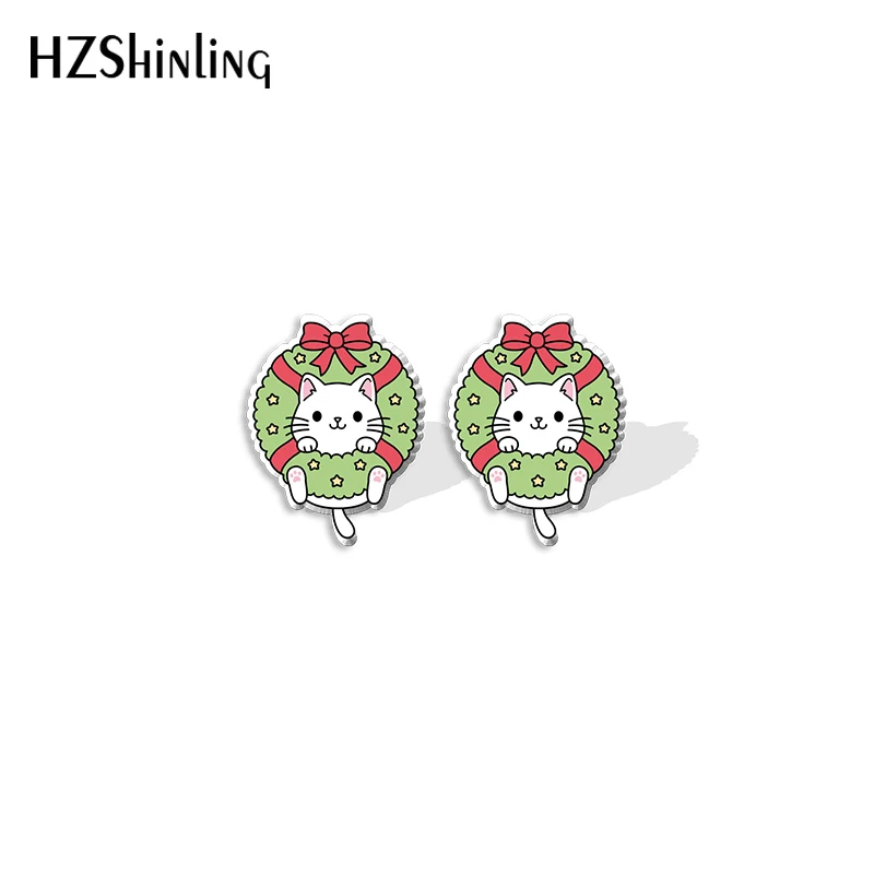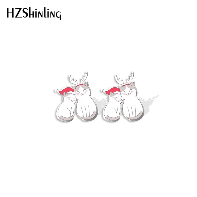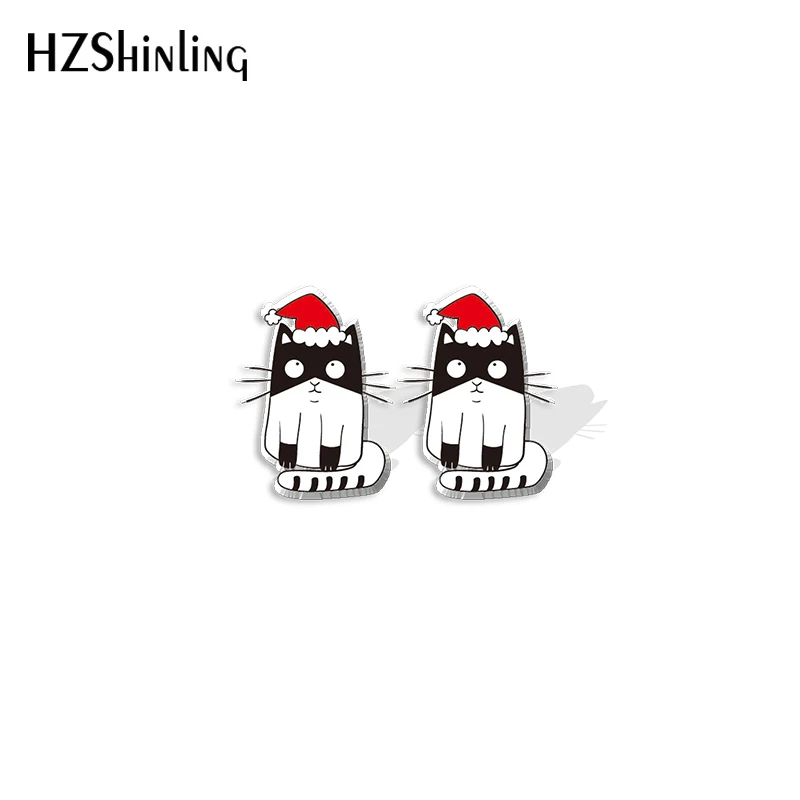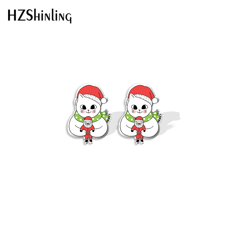 Новинка 2021, рождественские серьги-гвоздики в виде кота и Санты, милые серьги из акриловой смолы, эпоксидная смола, искусственная кожа, для девушек