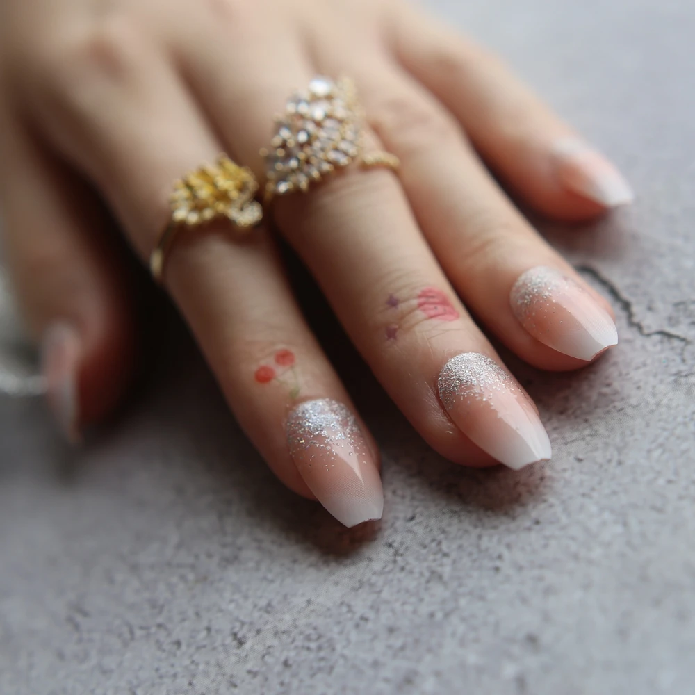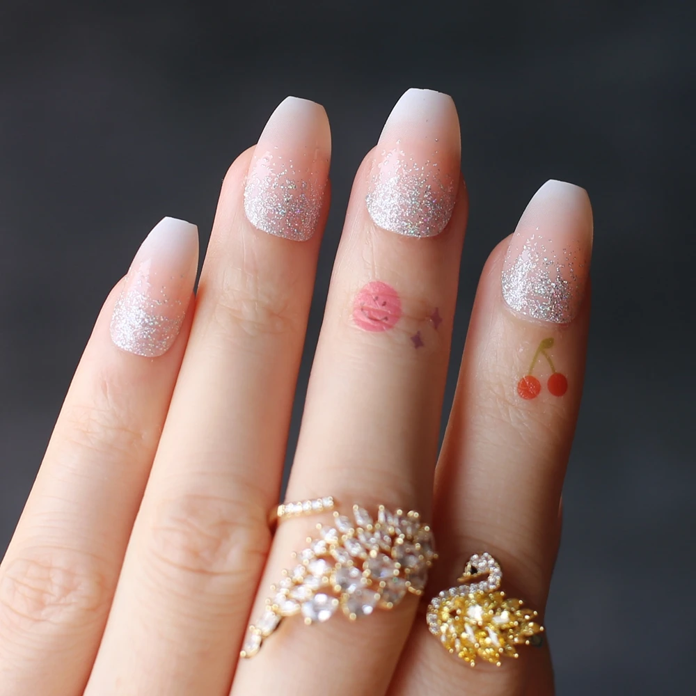 Короткие балетные Детские блестящие гелевые накладные ногти с эффектом омбре Натуральные Искусственные декоративные накладные ногти глянцевые повторное использование