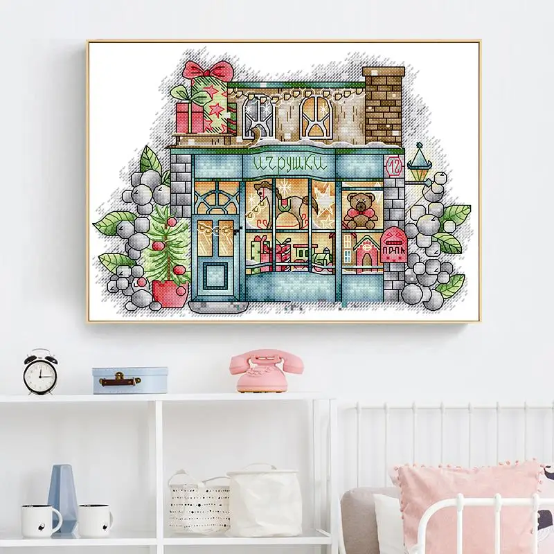 Рождественский магазин игрушек, Набор для вышивки крестиком 14 карат, 11 шт., Набор для вышивки детской комнаты, декоративные подарки
