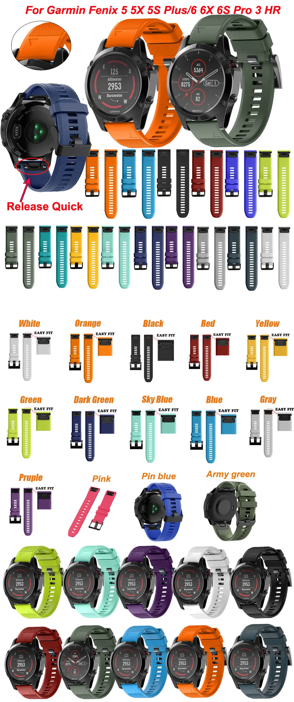 Силиконовый ремешок для часов Garmin Fenix 6 6X 6S Pro 5 5X 5S плюс 3 3HR 20 мм/22 мм/26 мм быстроразъёмное соединение ленточная Fenix 7 7X фотоаппаратов моментальной печати 7S epix ремешки наручных часов