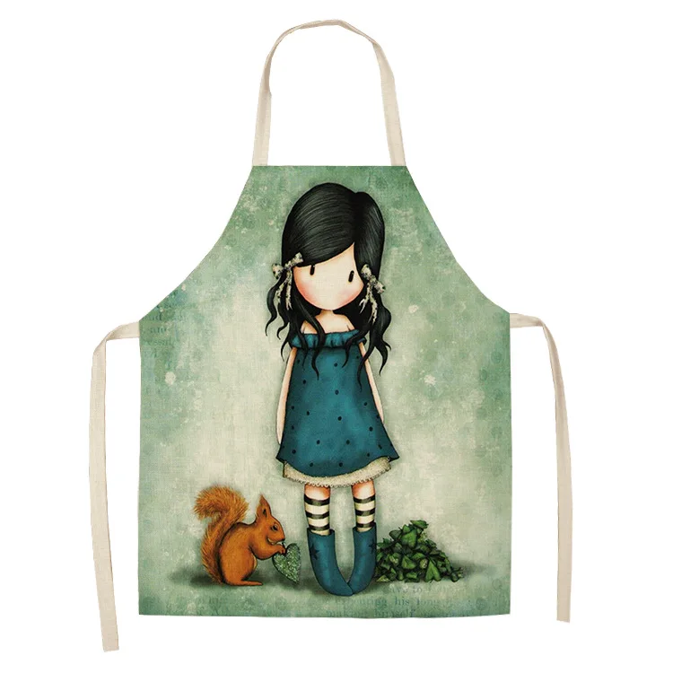 Фартуки из хлопка и льна для женщин, кухонные фартуки с принтом мил...