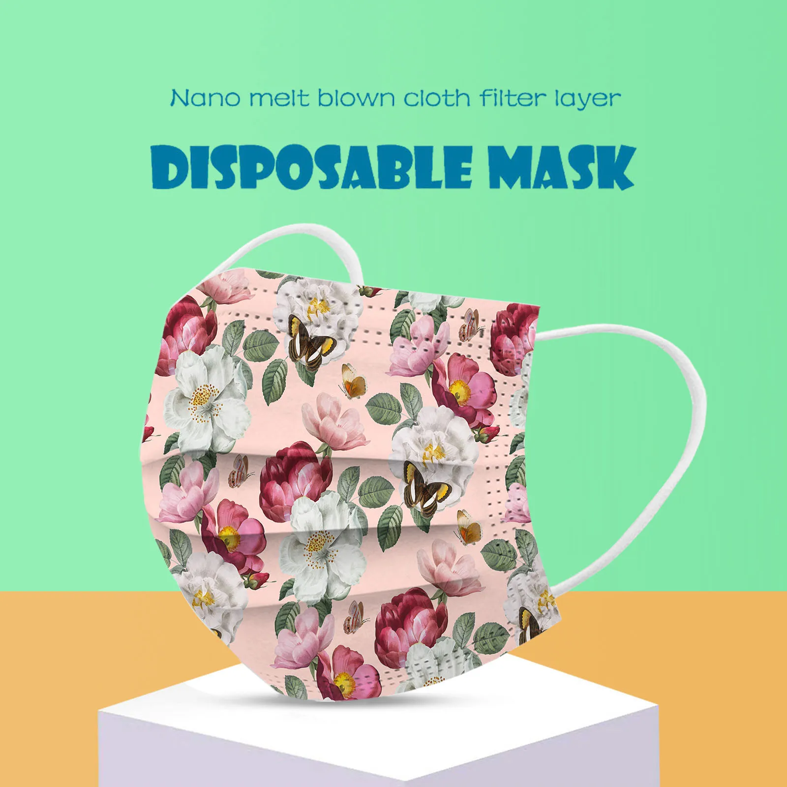 Маски Одноразовые 3-слойные с цветочным принтом для косплея, 10-50 шт.