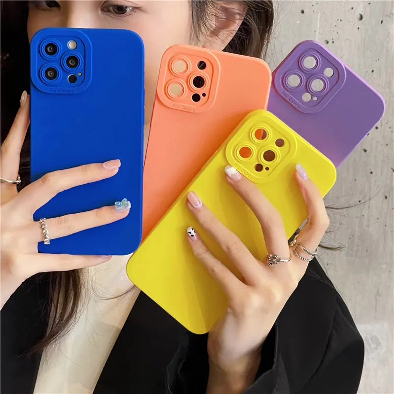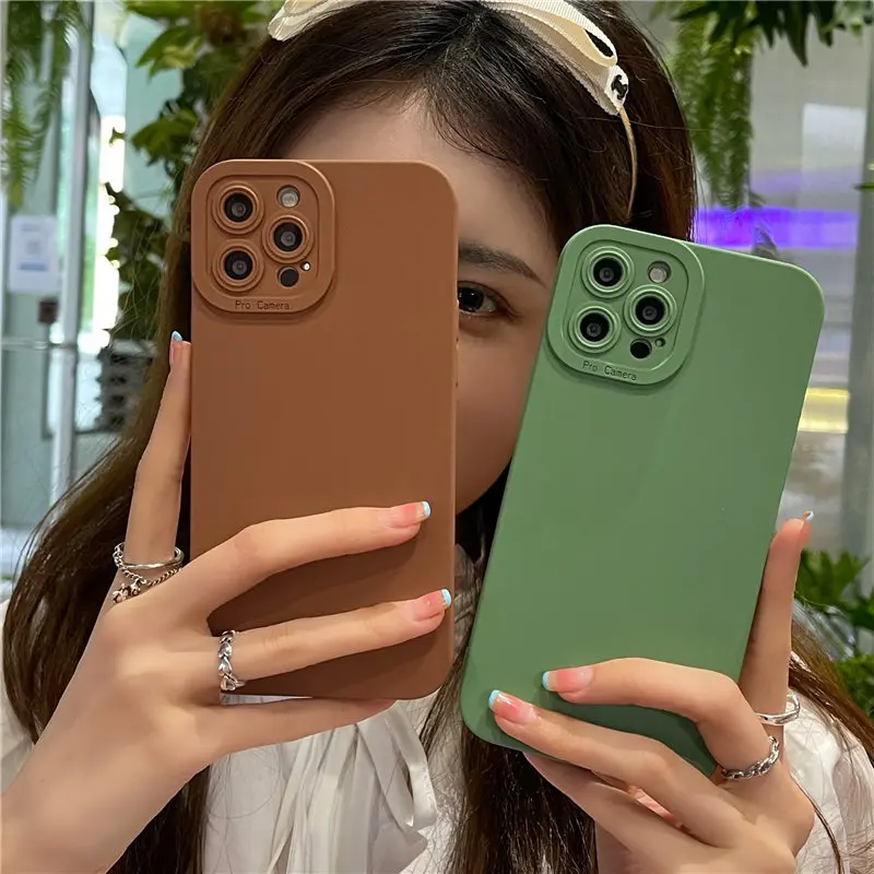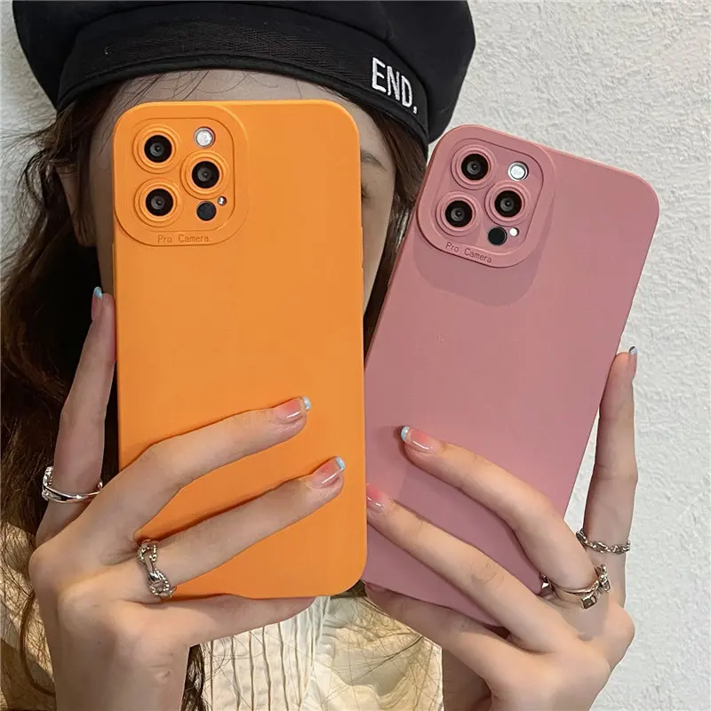 Защитный матовый чехол для телефона с камерой для iPhone 13 Pro Max 12 11 XS Max XR X 7 8 Plus 12 13 Pro, противоударный мягкий чехол карамельного цвета