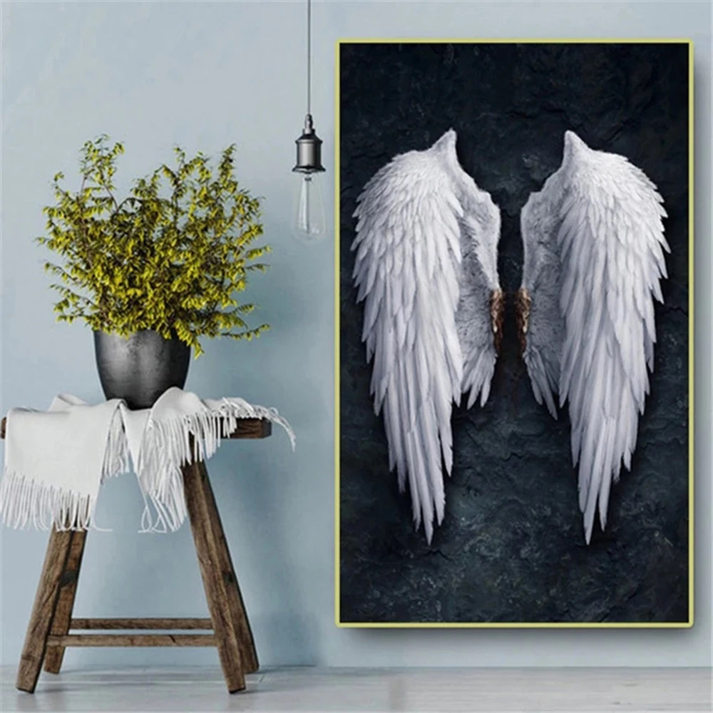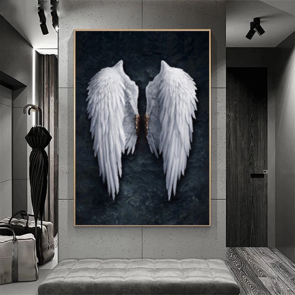 Черно-белые крылья ангела, холст, живопись, плакаты и принты, ангельские перья, крылья земли, креативная Настенная картина, Декор для дома и комнаты
