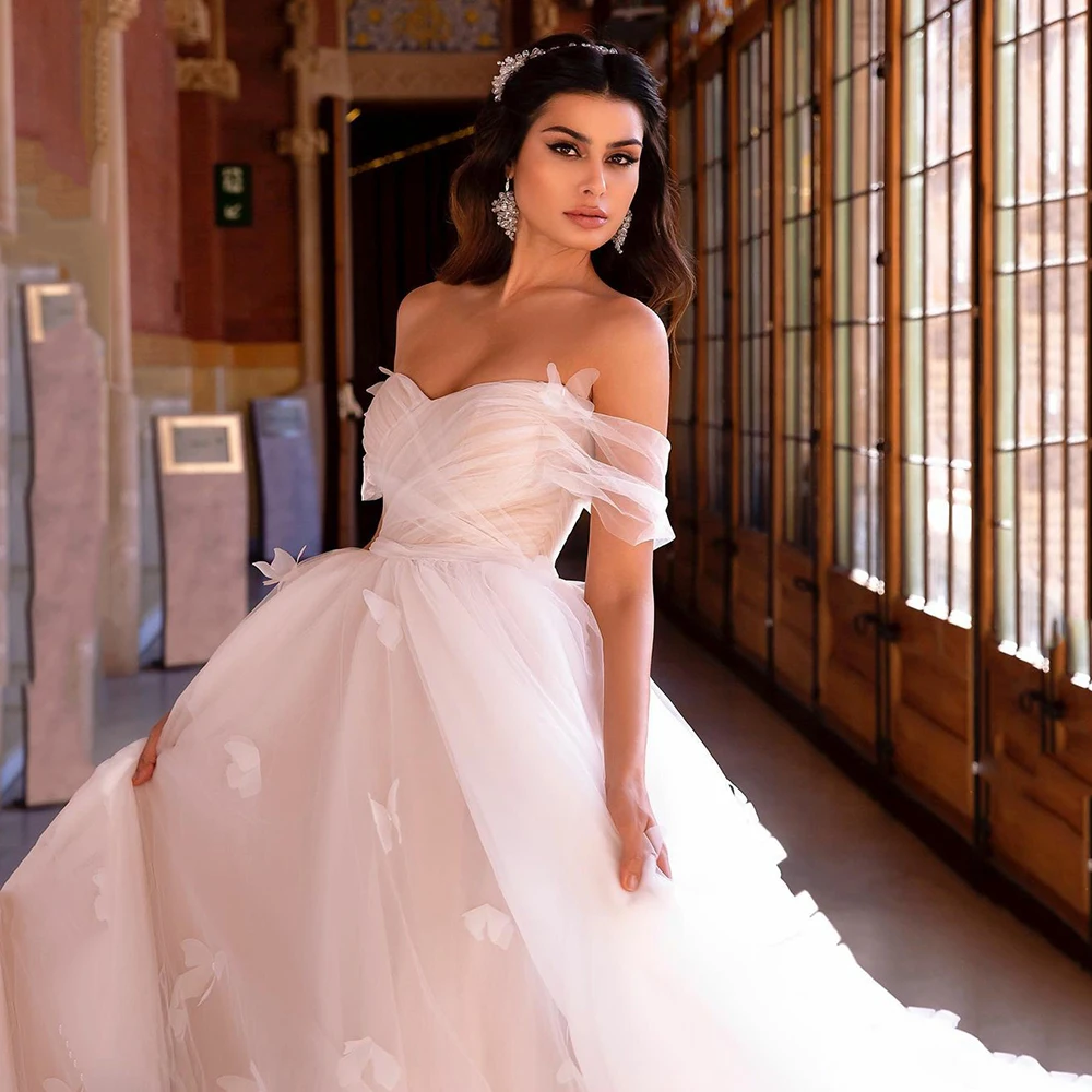 UZN, сексуальные современные свадебные платья принцессы с бабочками и длинными пышными рукавами, Милое Свадебное Платье, атласное фатиновое свадебное платье bestidos de novia 2022