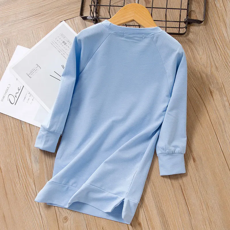 Однотонный комплект одежды для девочек, осенне-зимнее платье для девочек, осенняя одежда, платье-свитер с длинным рукавом и надписью