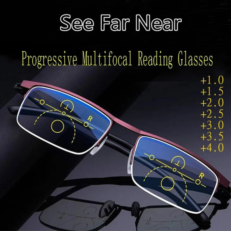 Металлические титановые многофокальные пресбиопические очки для чте...