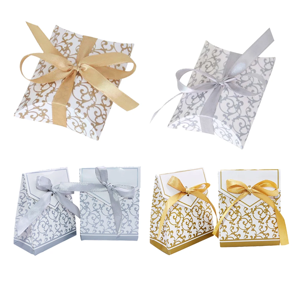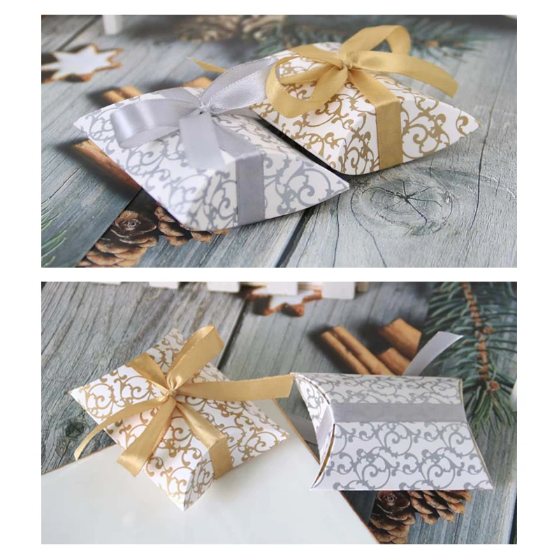 1 шт. Золотая Серебряная бумажная коробка конфет Подарочная сумка свадебный подарок упаковка детский душ сувениры товары для дня рождения свадебные конфеты