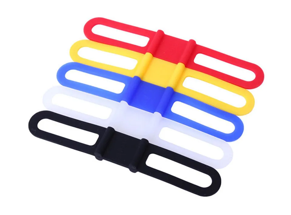 2.Велосипедная силиконовая лента для галстука-Они очень хорошо работают для быстрого добавления к рулю или трубке; С фонариками те, которые легко завинчиваются, это лучший вариант. Они держат мобильные телефоны, динамики, фонари, что-то действительно. Большие инвестиции. Он надежно удерживает flsh светильник s, когда вы едете на велосипеде в темную ночь, и только ваш флэш-светильник служит вашим руководством. Вы можете использовать их для прикрепления предметов различных размеров и форм к вашему велосипеду!