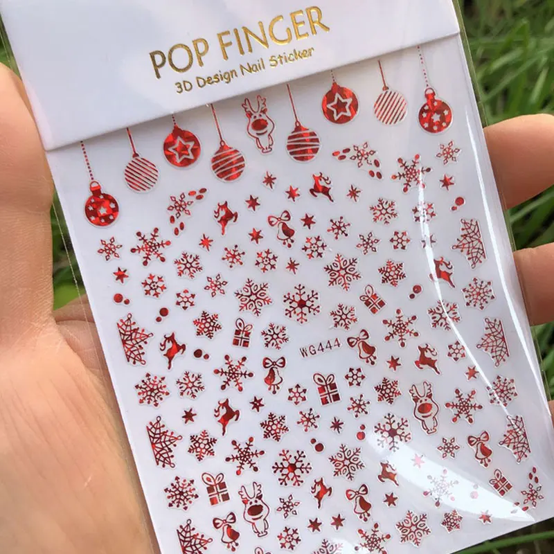 Рождественская наклейка, Красный Рождественский слайдер для ногтей, рождественские снежинки, 3D Маникюр, красочные самоклеящиеся наклейки для творчества