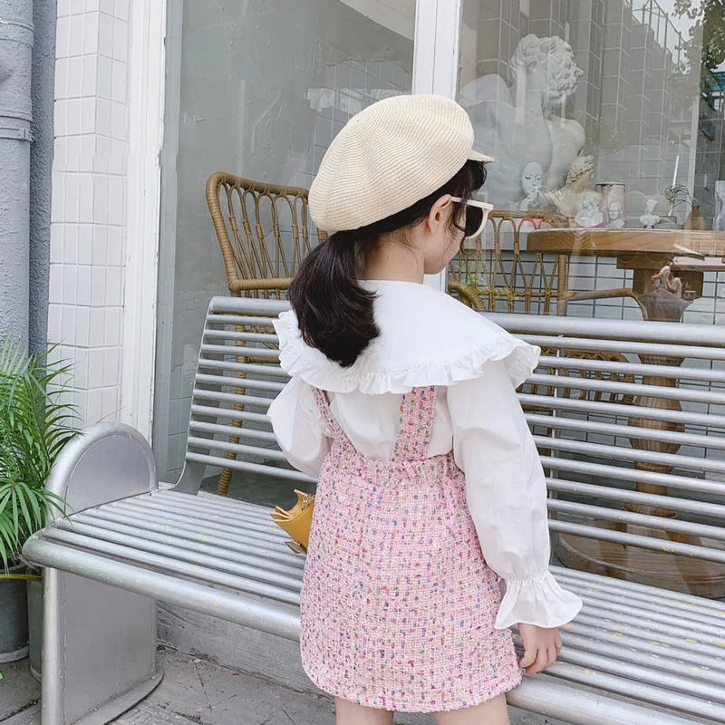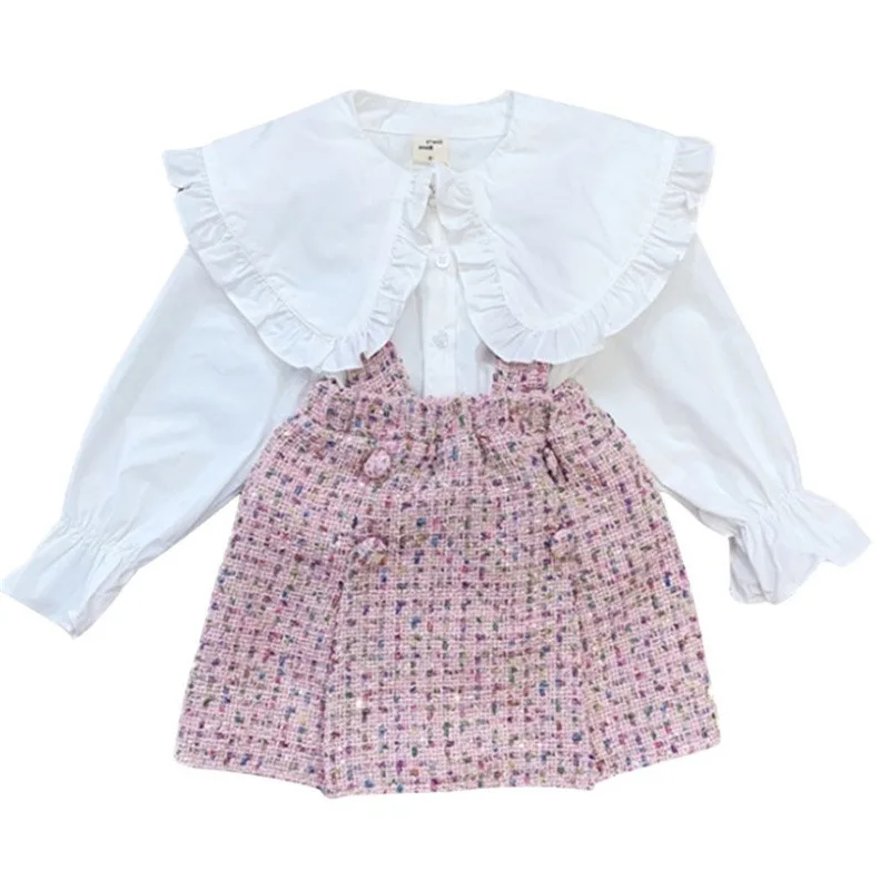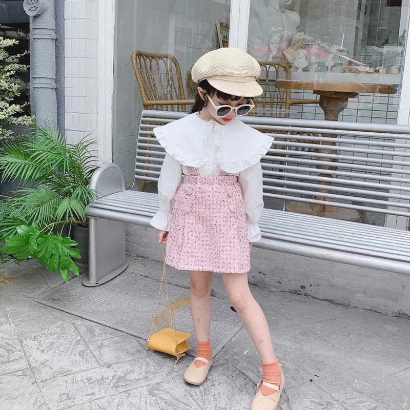 Костюм для девочек, детская одежда в западном стиле, новинка, Детская рубашка с длинным рукавом на весну и осень, детская юбка-слинг, костюм из двух предметов