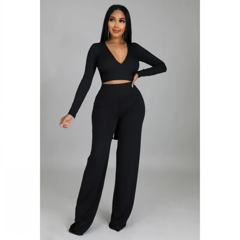 Повседневный костюм с футболкой с длинным рукавом, Новинка осени 2021, однотонный свободный Приталенный топ и брюки в африканском стиле, комплект из двух предметов, женская одежда