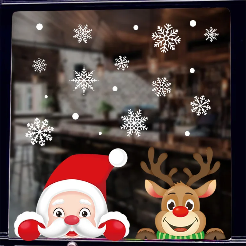 Рождественские наклейки на окна Санта-Клаус Снежинка Лось Рождестве...