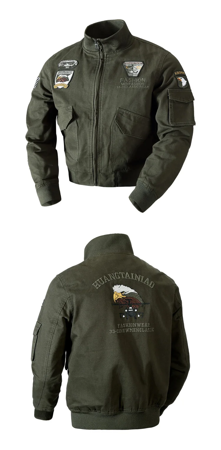 Мужская летная куртка-карго с вышивкой, повседневная куртка-пилот н...