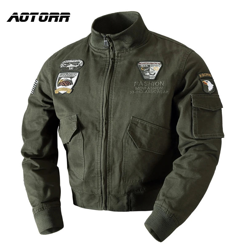 Модная хлопковая Военная летная армейская куртка-бомбер с лацканами