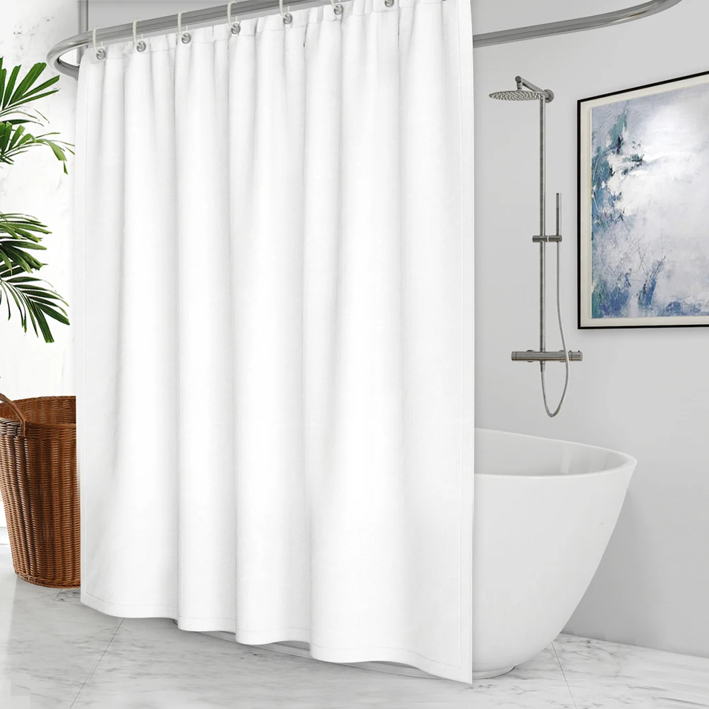 Длинная душевая занавеска чистого белого цвета, контрастная стильная фотозанавеска, водонепроницаемая душевая занавеска с крючками для кровати и ванной комнаты