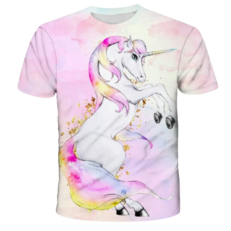 Детская футболка с коротким рукавом и единорогом, на Возраст 4-14 лет