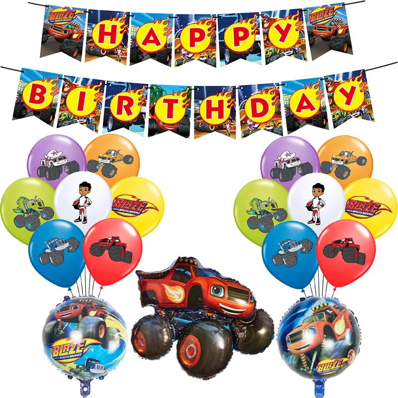 Blaze Monster, товары для вечеринок, машины, фольгированные шары на день рождения, предродительные подарки для мальчиков, шахматный гоночный автомобиль, латексные воздушные шары, игрушка