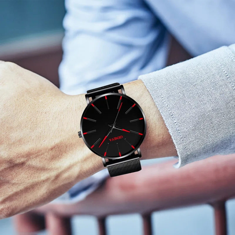 Мужские ультратонкие кварцевые часы с сетчатым ремешком, автоматиче...