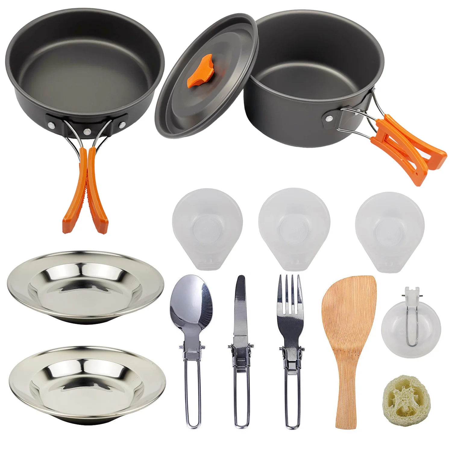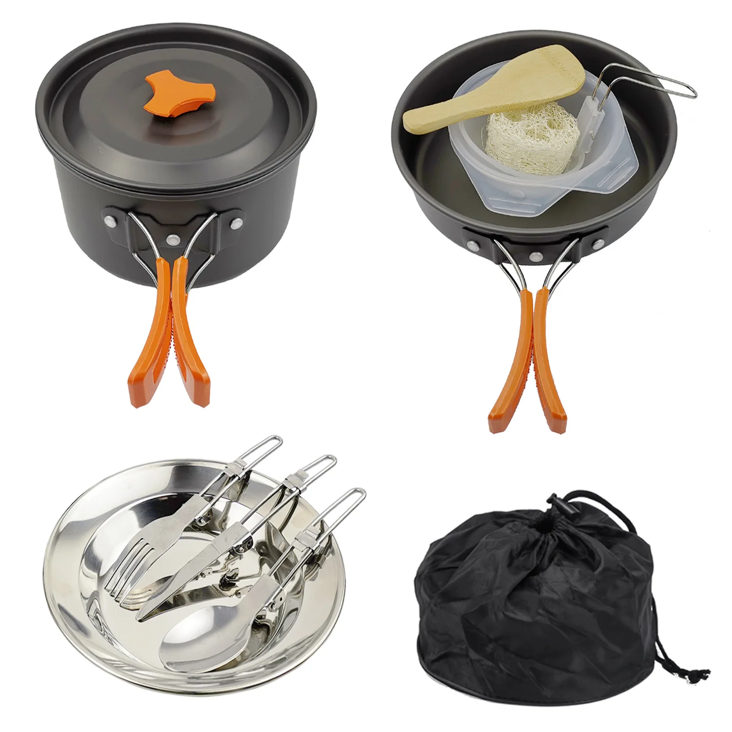 7 @ # уличный кемпинг, кухонная посуда, набор кухонных кастрюль, сковорода, путешествия, пеший туризм, пикник, посуда, оборудование