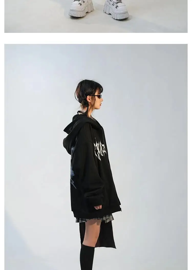 Новинка 2021, толстовка Y2K, свободная уличная толстовка на молнии ...
