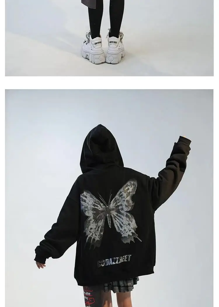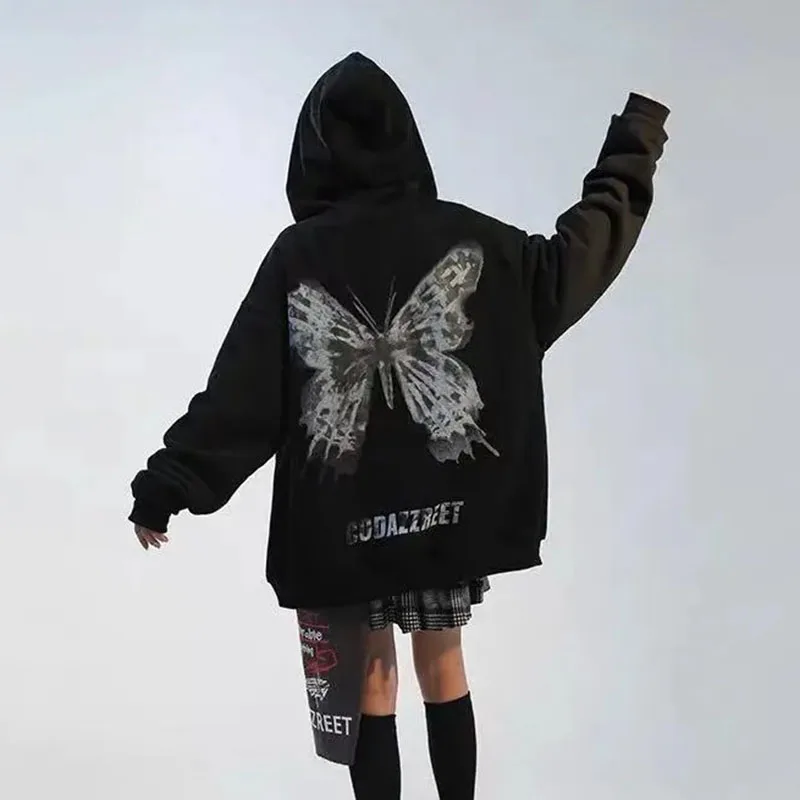 Толстовка мужская оверсайз с капюшоном, уличная одежда в стиле хип-хоп на молнии, куртка с принтом бабочки, худи в готическом стиле, Y2k, одежда в эстетическом стиле, гранж-панк