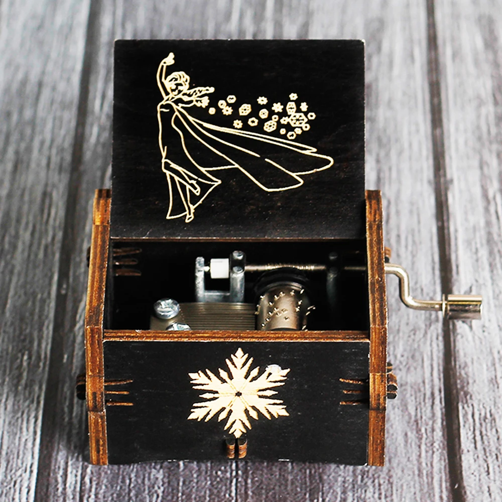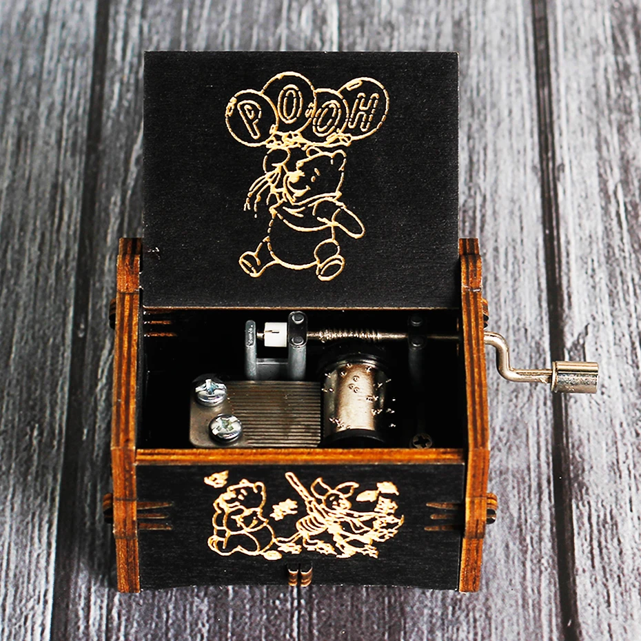 Черная тематическая серия Музыкальная шкатулка с резьбой по дереву королева Винни Пух подарок на день рождения Рождество Новый год подарок