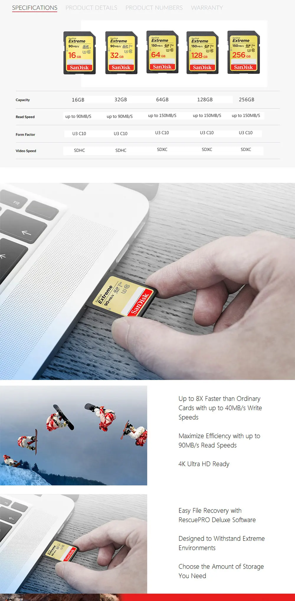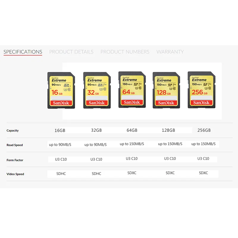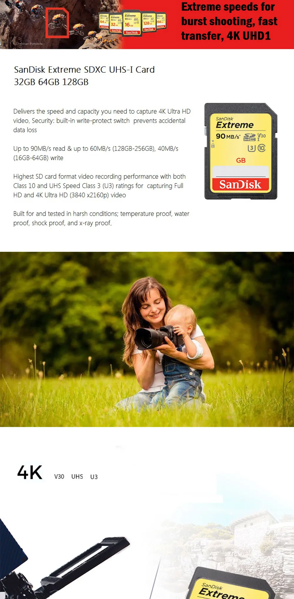 SD-Карта SanDisk Extreme SDXCSDHC, 64 ГБ, класс 10, 128 ГБ, 256 ГБ