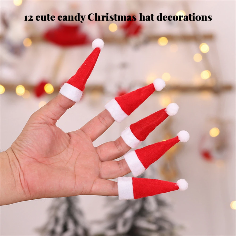 12 штук, маленькие рождественские карамельные шляпы, держатель, крышка, рождественские шапки, настольные куклы, украшения, ремесло, подарок для девочек и мужчин