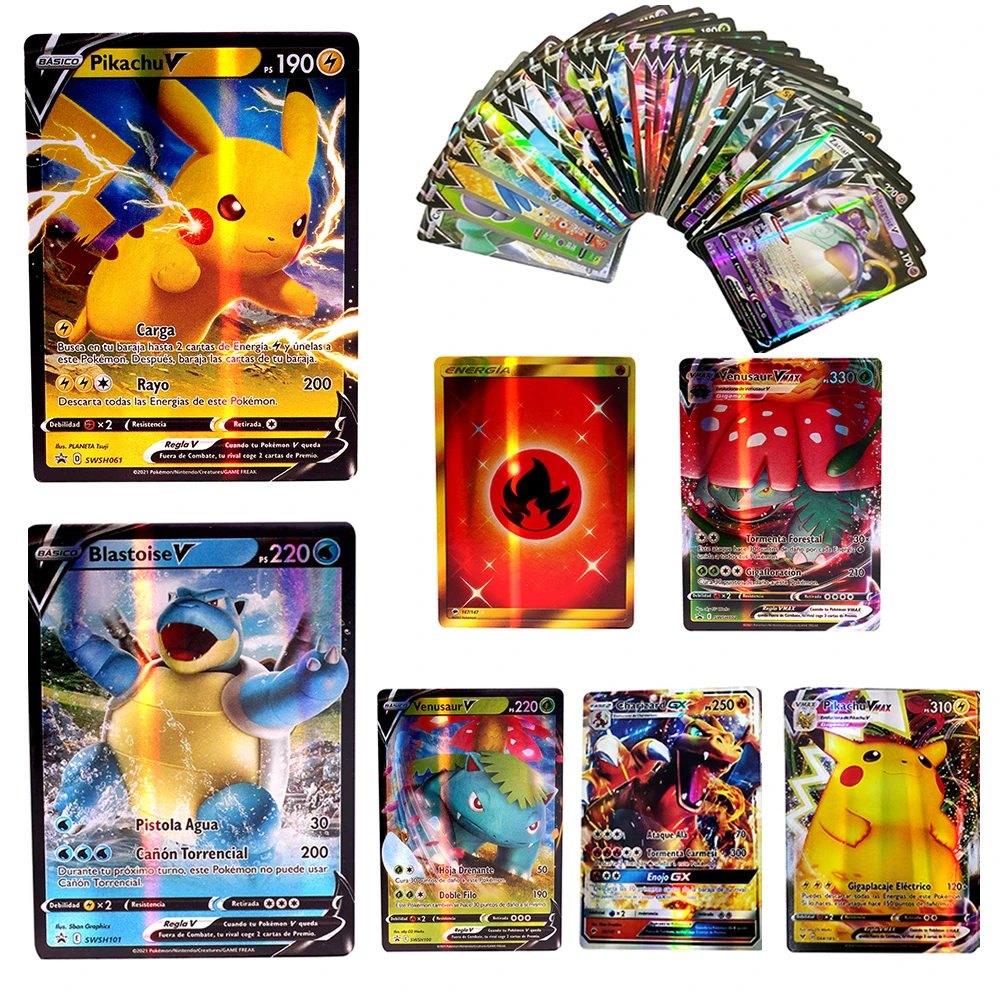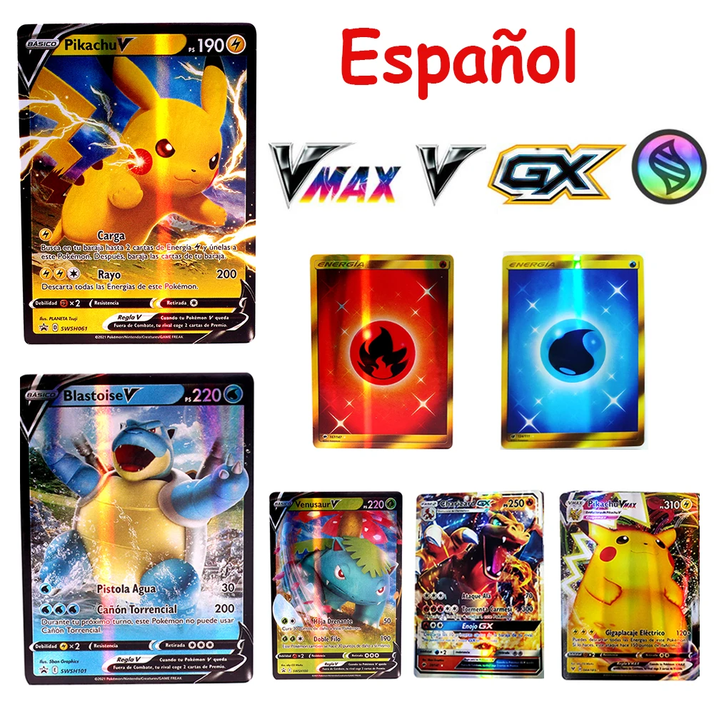 Новые карты Pokemon в испанской этикетке команда GX VMAX V тренажер энергия Сияющие карты игра Castellano Espaol детская игрушка
