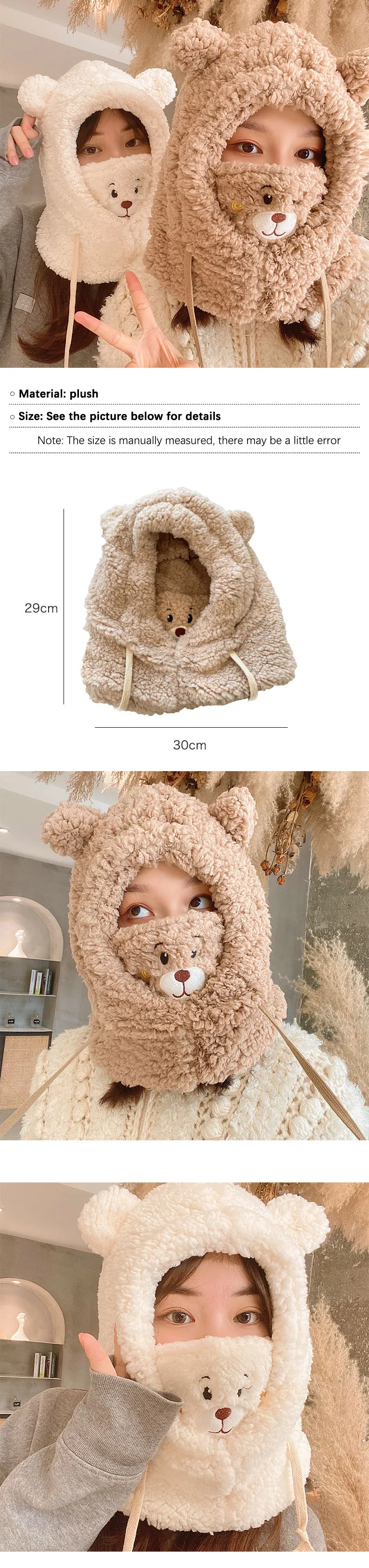 Шапка с мультяшным медведем, женская зимняя шапка, шарф, ветрозащит...