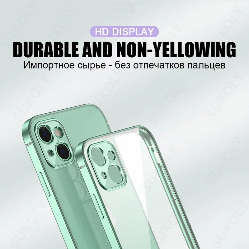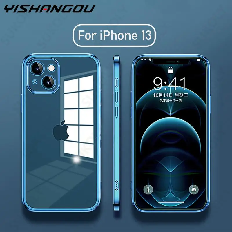Мягкий силиконовый чехол с квадратным покрытием для iPhone 13 12 11 Pro Max X XS Max 7 8 Plus SE 2020 11 12 13 Pro 6 6 Plus, прозрачный чехол