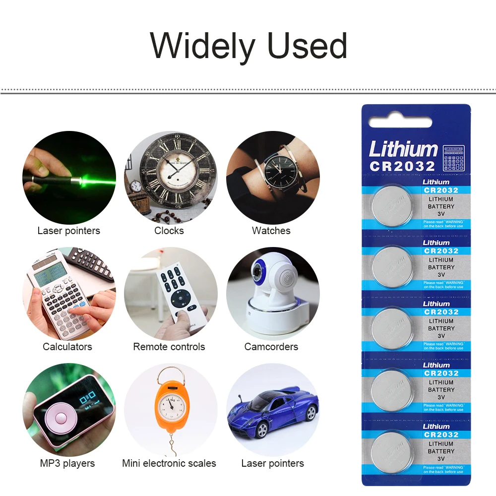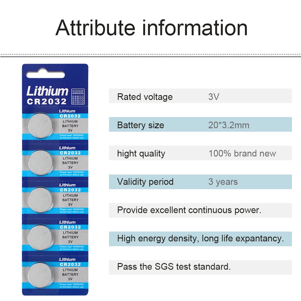 Литиевая батарейка 3 в CR 2032, 5 шт.1 карта, BR2032 DL2032 ECR2032 CR2032 5004LC KCR2032, батарейки для часов, игрушек