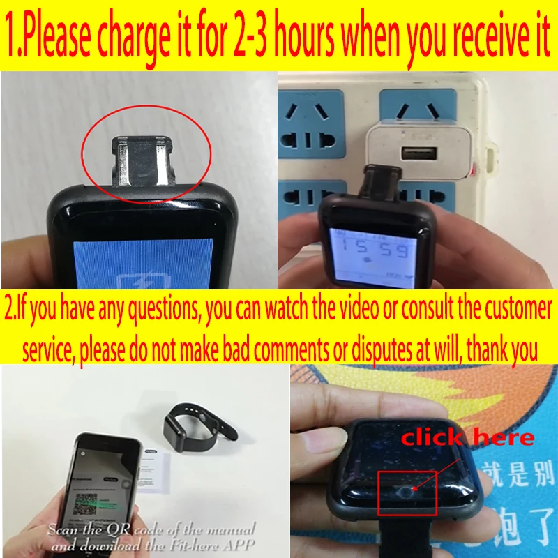 3. Если часы не могут быть stat rup, пожалуйста, зарядите их 5-10 мин перед использованием.
