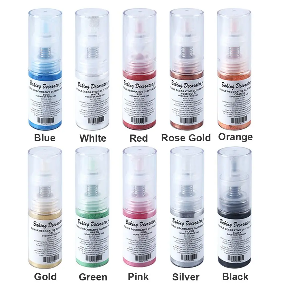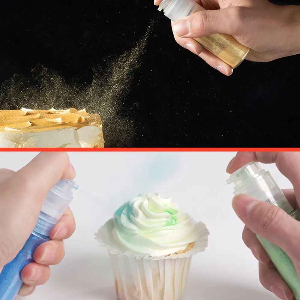 Съедобный золотой порошок в бутылке с распылителем, 10 гбутылка, блестящий Пекарский цвет, пыль, украшение торта, блестящая пудра, инструмент для украшения тортов