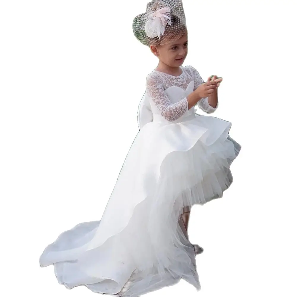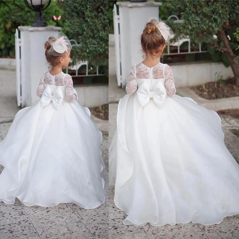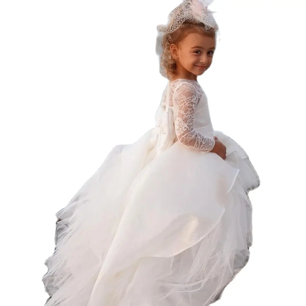 Платья для девочек с цветами, красивые платья для святой причастия, кружевное бальное платье с длинным рукавом и бусинами, пышное платье для выпускного вечера, пышное платье для девочек