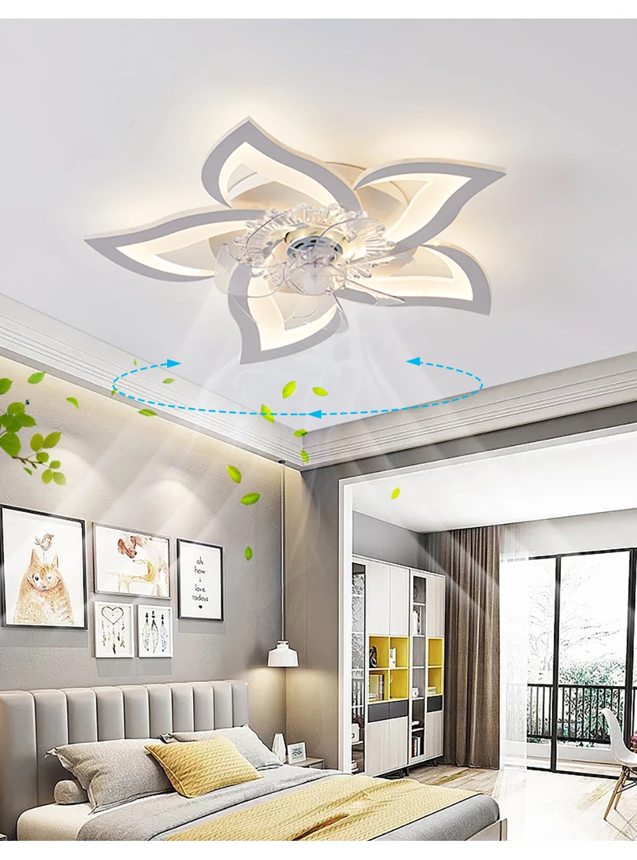 Современный светодиодный потолочный вентилятор с приложением на светильник и дистанционным управлением, бесшумный 3-ветровый Регулируемый потолочный светильник с регулируемой скоростью и регулируемой яркостью для гостиной