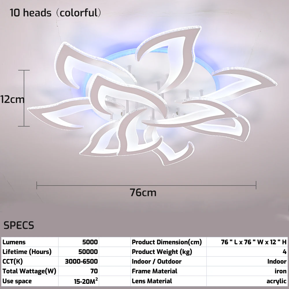 Бесплатная горячо быстро, красивая люстра и отлично подходит для работы с оба приложение, которое от дистанционный пульт, 3 цвета света и 3 скорости. Продавец добр и готов, чтобы отправить вам видео для установки люстра. Рекомендуем!