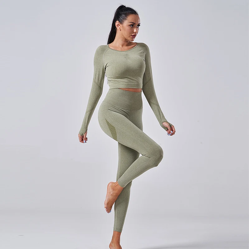 1. Бесшовная Гладкая эластичная ткань2. Мягкий Спортивный бюстгальтер пуш-ап со съемными подушечками3. Облегающая рубашка для йоги4. Укороченный топ для йоги с длинными рукавами и отверстиями для большого пальца5. Бесшовные штаны для йоги с высокой талией