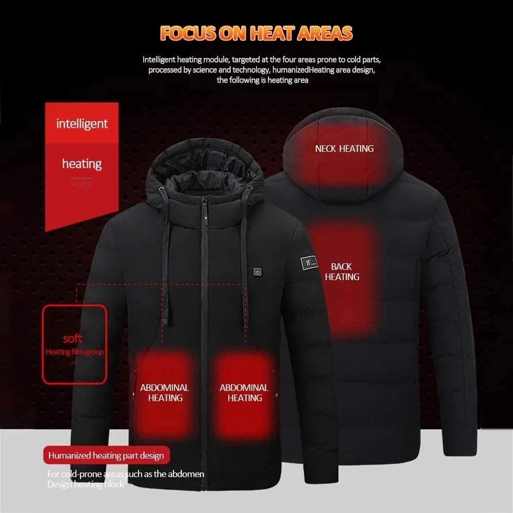 Мужская и женская умная куртка с электроподогревом и USB, хлопковое пальто, зимняя утепленная куртка с капюшоном, уличная одежда для пешего туризма и лыжного спорта, куртка с подогревом 4