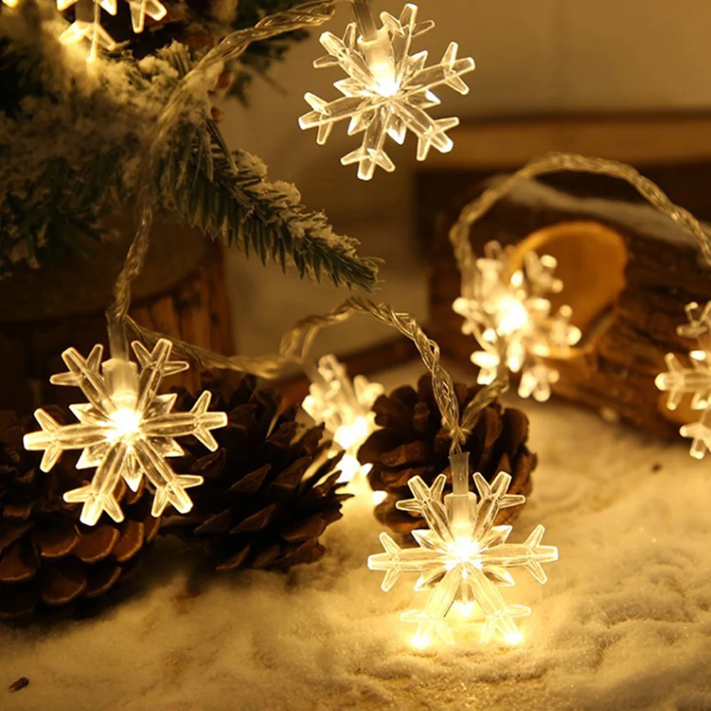 СВЕТОДИОДНАЯ Гирлянда в виде снежинок, 2 м, 10 светодиодов, сказосветильник гирлянда, гирлянда с питанием от аккумулятора, новогодние и рождественские украшения, 2022