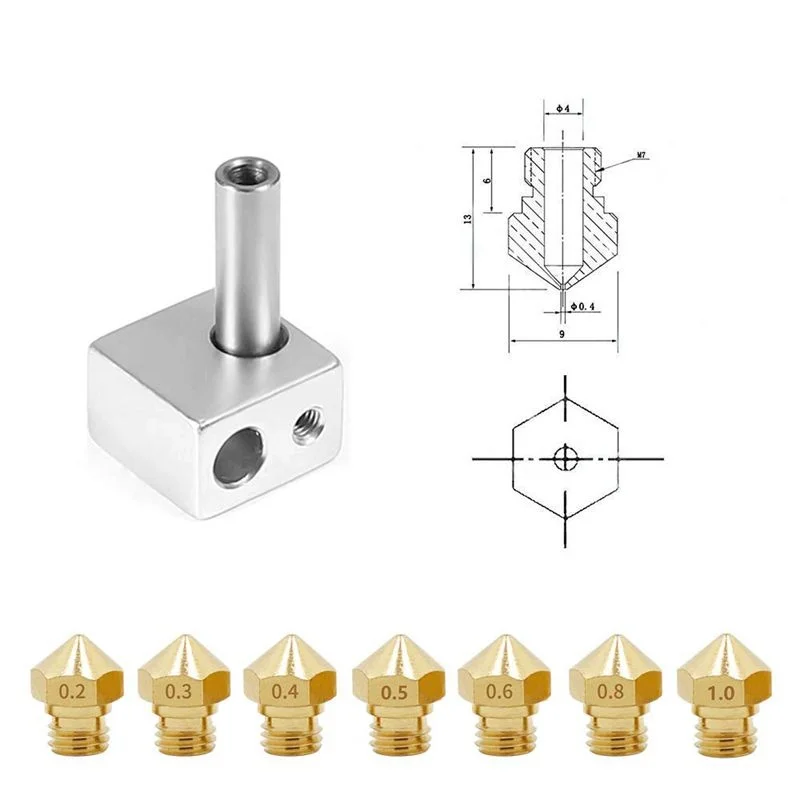Латунный экструдер для 3D принтера M7, сопла горячего отверстия MK10 0,2 мм, 0,3 мм, 0,4 мм, 0,5 мм, 0,6 мм, 0,8 мм, иглы для очистки подходят для 1,0 мм