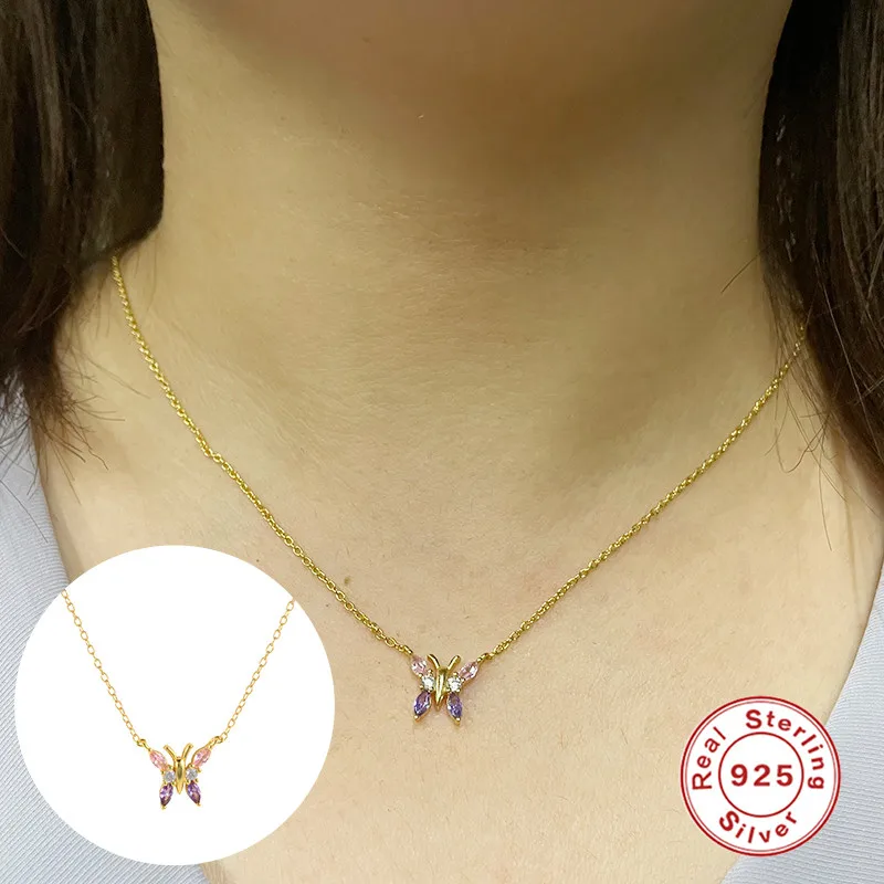 S925 серебро Красочные Циркон Бабочка ожерелье для женщин 2021 ювелирные изделия на шею цепь чокер ключицы Mujer Collares Bijoux CZ