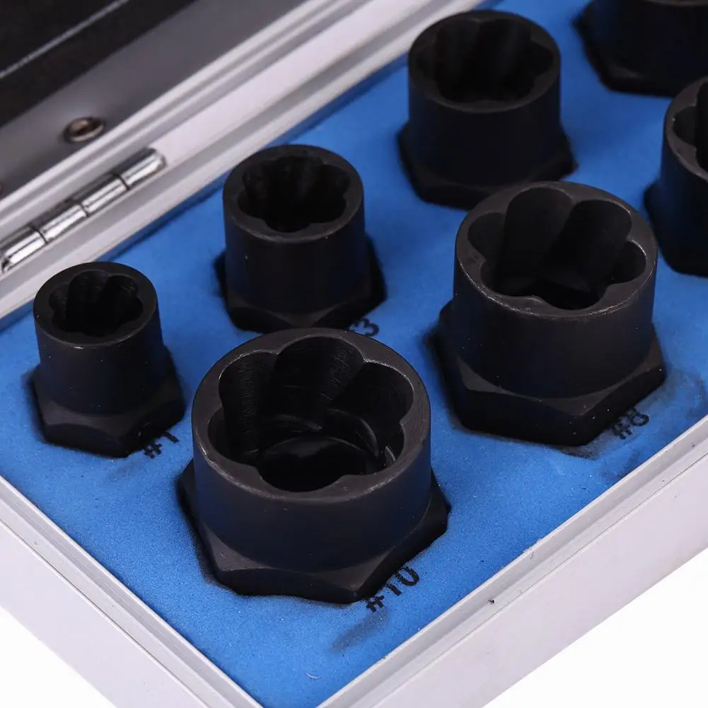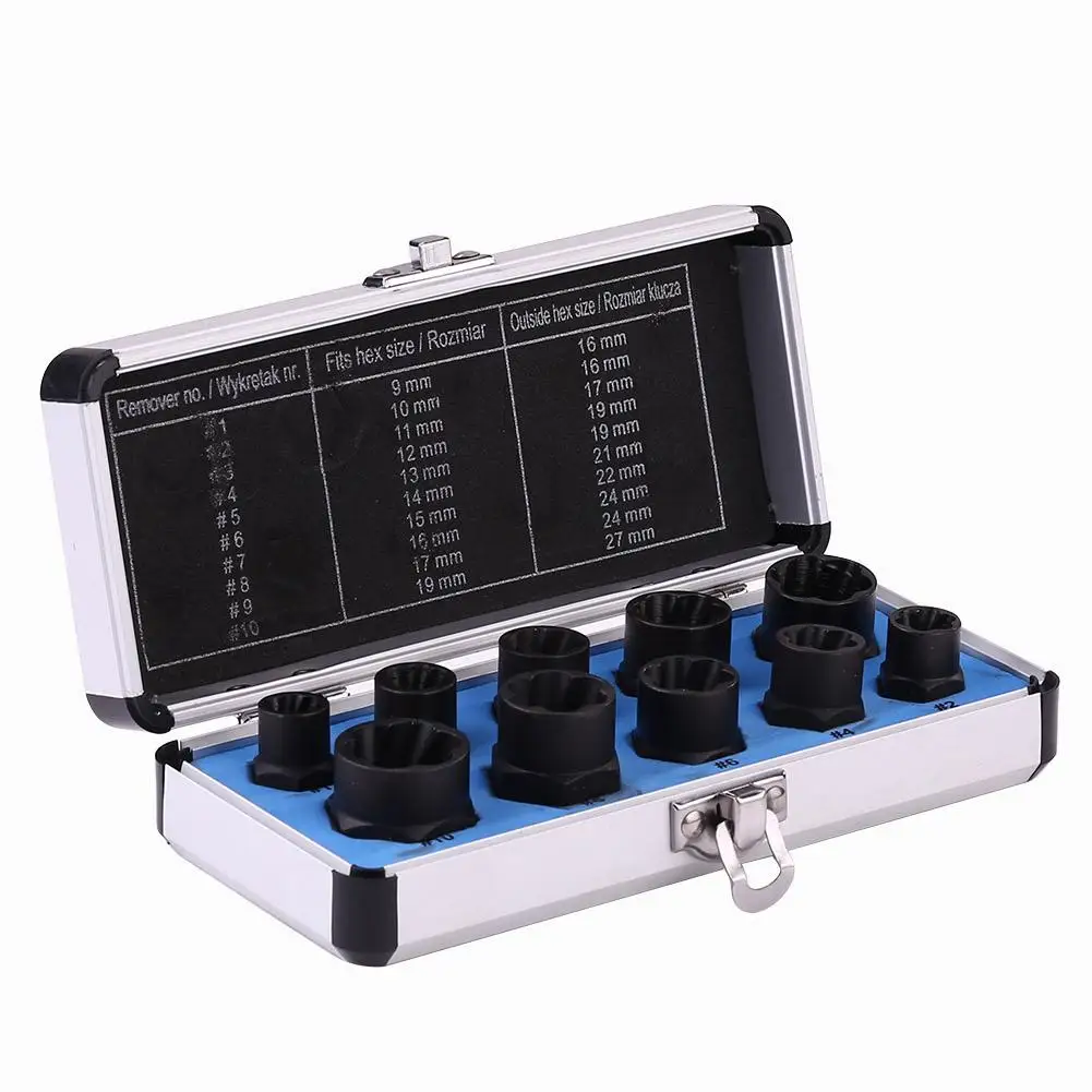 10 шт.компл. устройство для удаления поврежденных гаек и болтов 9-19 мм, оборудование для механики гаража, Инструмент для извлечения резьбы, ручной набор инструментов для дома
